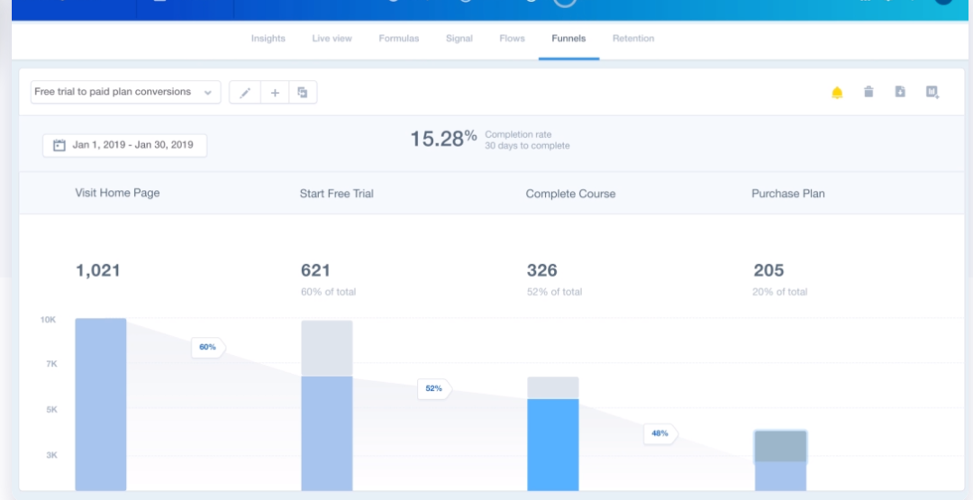 Mixpanel一切的追蹤都是以使用者為中心,Cohort Analysis也是他們的重點,Mixpanel能更有深度的分析出消費者的輪廓,同時可搭配商家的CRM數據使用並且直接推播,對於需要長期追蹤收益的公司來說會是有價值的選擇,若需要追蹤流量還是可跟GA互相搭配使用。